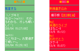 リアルタイムでたくさんの相手との会話が楽しめるチャットや、伝言や連絡にも使える掲示板を設置することができます。