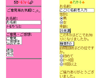 アンケートフォームを作ることができます。サイトの感想や、サイト訪問者の意見収集など、様々な形で使うことができます。